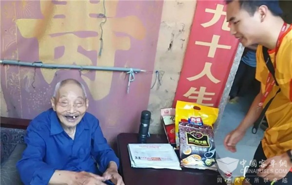 2017年,在临近“八一”建军节之时,中车电动组织青年志愿者慰问抗战老兵黎模达。为黎老送上慰问品,聆听老人回忆峥嵘岁月。