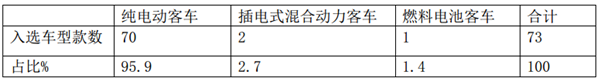 按照动力类型划分,2019年第3批入选的新能源客车车型中,70款是纯电动客车,1款燃料电池客车,2款插电式混合动力车型。