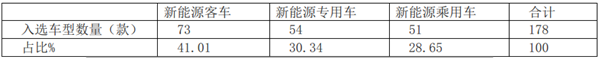 可以看出,在2019年第三批《目录》中,新能源客车73款,占比高达41.01%,是本批推荐车型中最多的新能源车型;新能源专用车54款,占比30.34%,在新能源汽车中占比为第二;新能源乘用车51款,占比为28.65%,占比最小。
