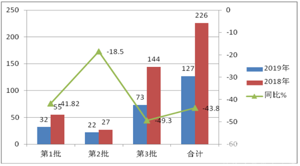 根据2019年前三批次与2018年同期批次目录数据统计:
