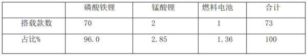 根据完美作业网有免费视频统计,从搭载动力电池来看,本批次入选的73款纯电动客车,其中70款搭载磷酸铁锂电池,2款搭载锰酸锂电池,1款搭载燃料电池。