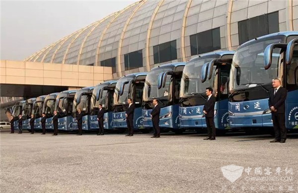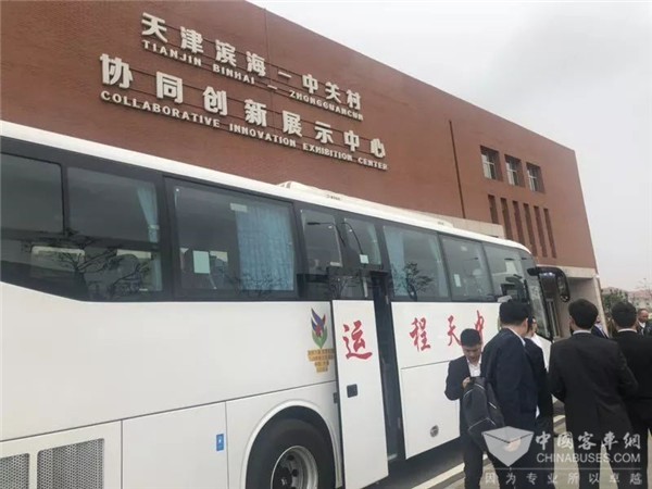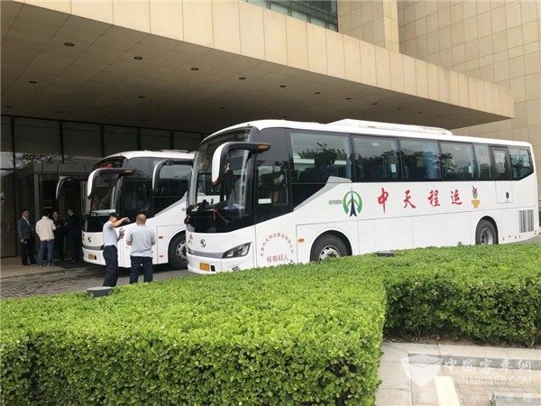 交流会期间,日前交付天津中天程运客运有限公司(以下简称“中天程运”)的金龙客车XMQ6112投入本次接待服务。