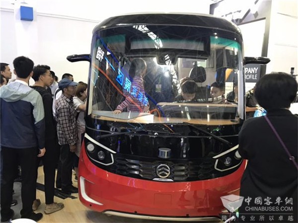 金旅无人驾驶客车“星辰”在现场受到参展群众热情关注