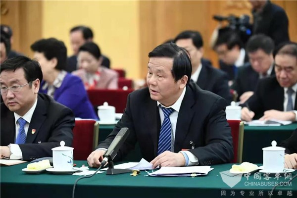 宇通集团董事长汤玉祥围绕“推动先进装备制造业走出去”作汇报