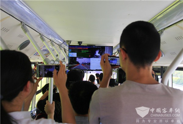 活动现场,通过搭乘金龙智能网联BRT,大家充分感到公交出行应用5G技术所带来的智能、安全、便捷等方面的提升。上午10时许,受邀嘉宾、媒体代表及市民搭乘金龙智能网联BRT从华侨大学站始发,诚毅学院、大学城、产业研究院、中科院后返程至华侨大学站,声临其境感受应用5G技术的智能公交示范应用已实现的超视距防碰撞、实时车路协同、智能车速策略、安全精准停靠等功能。