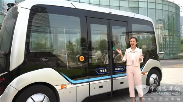 主持人介绍宇通自动驾驶巴士的外观设计