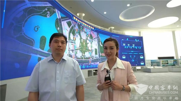 主持人走进宇通自主研发的“自动驾驶云控平台”,宇通IT产品经理孙德立讲解相关技术和原理