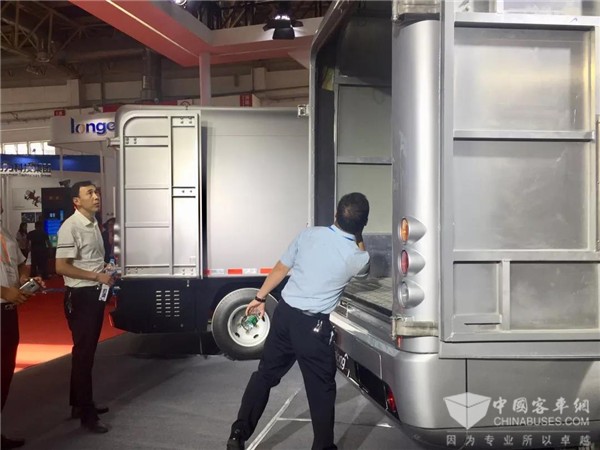 不久前在网上火爆的银隆“高铁级”公交车,此次也来到了展会现场,靓丽的造型、人性化的内部设计吸引了广大参观者的目光。