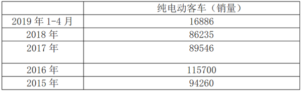 纯电动客车受到政府政策的支持,在国内市场已经耕耘多年。经济性、基础设施建设方面优势明显,近年已基本形成了规模化(近年具体销量见下表,含6米以上纯电动客车).
