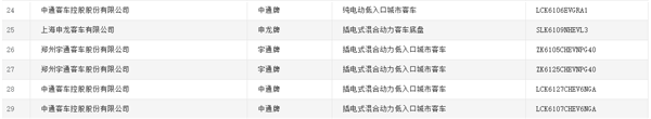以下为:申报工业和信息化部《道路机动车辆生产企业及产品公告》(第320批)的车辆新产品公示(客车部分)