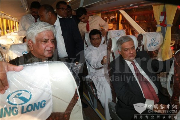 这是斯里兰卡国有运输企业首次采购中国品牌客车,具有重大的历史意义,斯里兰卡总理维克勒马辛哈到场见证这一重要时刻,并亲自上阵为新车剪彩,将车钥匙交给司机后进行试乘。“这批超级豪华客车将为斯里兰卡民众带来高质量的交通出行服务。”亲身体验龙威II代后,他为金龙客车产品点赞。