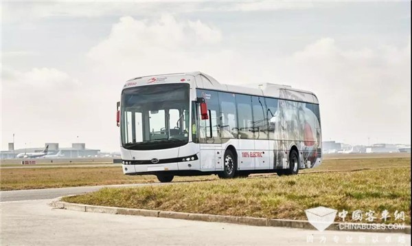 行驶在布鲁塞尔国际机场的比亚迪12米纯电动大巴