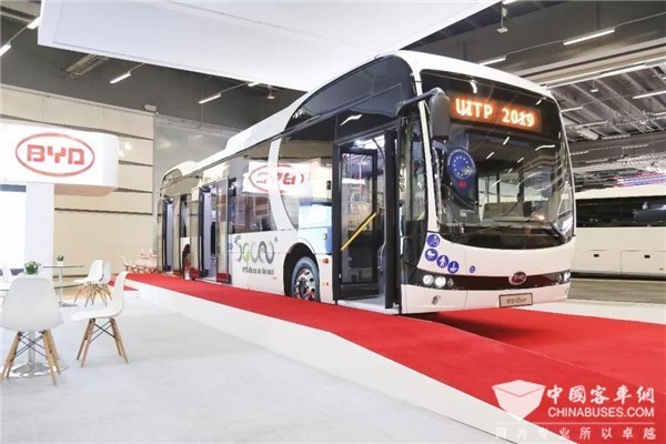 比亚迪12米纯电动大巴亮相2019全球公共交通峰会