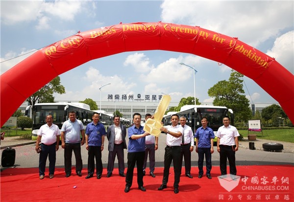 2019年8月3日上午,扬州亚星客车工业园区内举行盛大仪式——乌兹别克斯坦城市公交发车,这批车辆代表着乌兹别克斯坦从中国进口公交新突破。