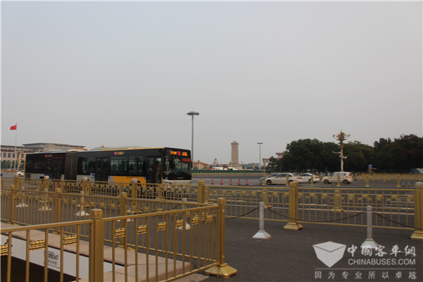 行驶在天安门广场前的5路公交