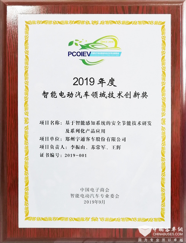 单从9月份的行业动向来看,宇通依旧是行业中最活跃的一员。2019年9月6日,由中国电子商会智能电动汽车专业委员会主办的2019年度大会暨高峰论坛在安徽合肥举行,会上公布了2019年智能电动汽车领域技术创新奖,宇通客车“基于智能感知系统的安全节能技术研发及系列化产品应用”项目成功获奖,标志着宇通在智能化安全节能领域的突出技术成果得到行业高度认可。