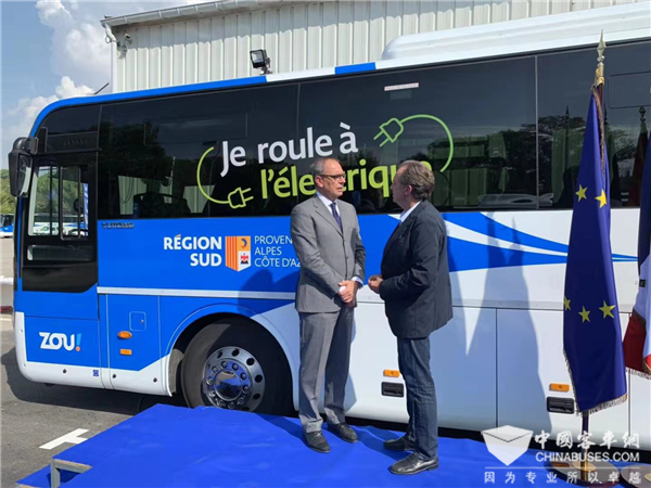 2019年9月19日,欧洲第一条纯电动城间车线路正式启动——10辆宇通ICe12纯电动城间车在法国普罗旺斯地区艾克斯投入运营,该批车由欧洲国际运营商Transdev集团采购。法国普罗旺斯—阿尔卑斯—蔚蓝海岸地区主席雷诺·米瑟利耶,Transdev集团董事长兼首席执行官蒂埃里·马尔莱特等领导出席启动仪式,共同见证欧洲在绿色出行领域所取得的里程碑式成果。
