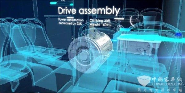 系统化节能措施,采用轻量化设计,部件级降重达30%以上,节能10%左右;驱动系统永磁化、机电耦合双源辅助系统等技术,使实际公交工况能耗比行业平均水平下降10%。