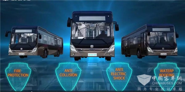 车辆安全性是新能源汽车的重中之重,从防火、防水、防碰撞、防触电方面出发,公司设计了多重的安全防护系统。