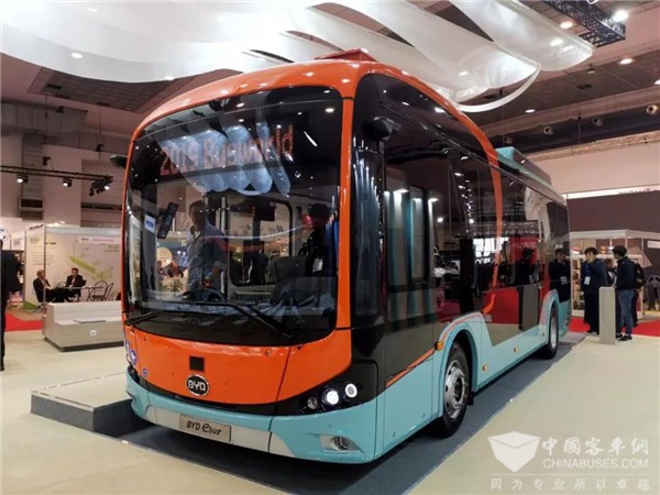 采用全新内外饰设计及配色的比亚迪纯电动巴士亮相比利时世界客车博览会