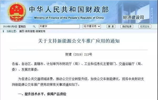 今年5月8日,财政部、工业和信息化部等四部门联合发布《关于支持新能源公交车推广应用的通知》,明确中央财政支持新能源公交车推广使用政策有关事项,以促进公共交通领域消费,推动公交行业转型升级,加快公交车新能源化。