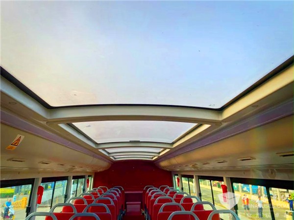 为了进一步探究银隆新能源“脸谱”双层巴士的奥秘,发布会现场嘉宾们走进车厢参观、体验。与传统公交不同,“脸谱”双层巴士上层采用顶层全景天窗设计,乘客可体验敞篷视角的辽阔与惬意,全方位欣赏城市之美。