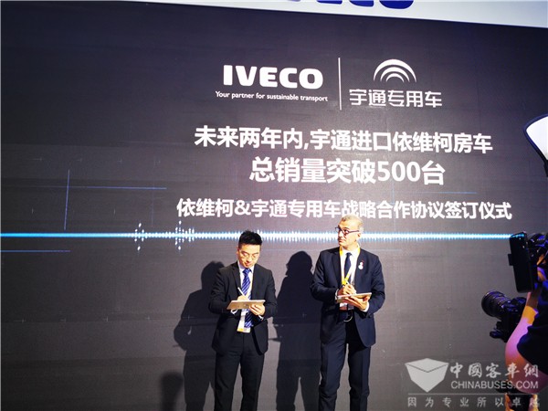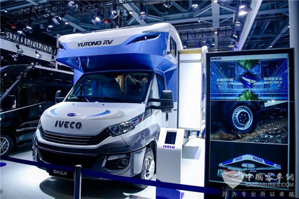 展会同期,依维柯同宇通专用车签署战略合作协议,目标未来两年内,宇通进口依维柯房车总销售量突破500台。