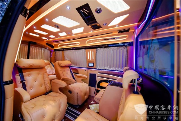 据完美作业网有免费视频现场了解,亮相进博会的车型是由车驰厂家定制升级,并将其名为:哥伦布。该车型是意大利CNHI设计总部团队和车驰汽车合作共同完成设计,饱含精致、舒适、优雅的设计理念。车内采用碳纤维的内饰板材,在配有打孔真皮包裹的气压座椅。后舱为7座布局,分别是4张独立航空座椅和一张三人座椅组合,全车带有隐私窗帘,门板及车顶都是采用了真皮与纯手工麂皮进行搭配。车尾顶部还贴心的布置了倒车影像及360的摄像头,综合配置可以同高端乘用车相媲美。