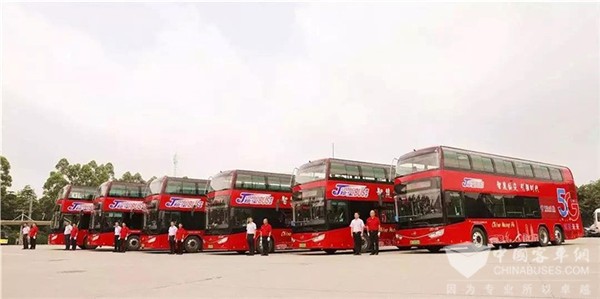 2019年5月17日上午,全球首条常规公交5G运营线路正式开通暨黄埔智慧公交产业园揭牌活动在广州黄埔区珍宝巴士公司大观路停车场举行。10台安凯纯电动5G双层巴士威武列阵,全面助力黄埔区、广州开发区建设粤港澳大湾区5G第一示范区。
