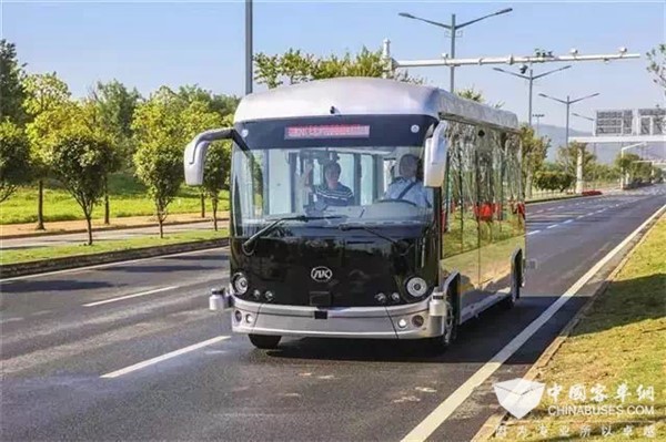 在武汉国家智能网联汽车测试示范区运营的安凯无人驾驶客车