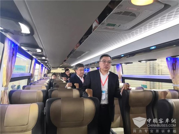 此次展会上中通客车还带来了其全新的旅团客车——LCK6125HQ5A1,作为紧跟当前市场形势,为用户量身打造、符合时代发展需要的中通新一代豪华旅游大巴,LCK6125HQ5A1全方位融合了中通客车经典世轩、世嘉等豪华旅游客车产品的优势,在可靠性、安全性、动力性、轻量化、经济性等方面都达到行业最佳。另外,在内饰方面,中通LCK6125HQ5A1经专业设计,更加美观、高档、典雅;车内空间比同类车型空间大5%左右,无论作为团体班车,还是旅游客运用车,都给乘客带来更舒适的乘坐体验。