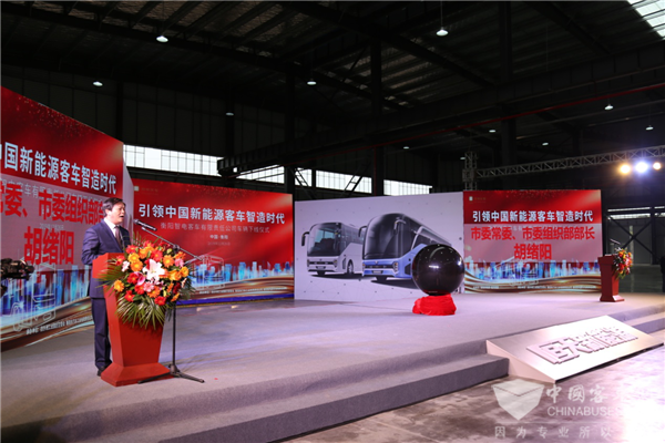 活动现场,衡阳市委书记、市人大常委会主任郑建新,衡阳市政协党组书记刘光跃,衡阳市委常委、市委秘书长刘正兴,衡阳市委常委、市委组织部部长胡绪阳,衡阳市人民政府原副市长胡水龙,恒天集团党委副书记、总裁刘海涛,恒天集团副总裁、恒天重工集团董事长李晓红,恒天重工集团党委书记汤其伟,智电客车董事长汪先锋,恒天九五重工党委书记王泽民,湖大三佳董事长刘林峰等领导出席典礼并做出重要讲话。