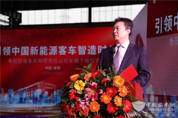 “在时间紧、任务重的情况下,项目团队夜以继日,顽强拼搏,基地建设和设备安装基本完成,200辆新能源车辆按时交付、激活了“雁城牌”车辆生产资质,重组并购衡阳客车厂,衡阳客车再次恢复了生机和活力。今天的下线仪式,标志着“雁城牌”客车的复兴之路正式起航,意味着衡阳市再次拥有了自己的汽车整车产业、开启了衡阳新能源汽车产业发展的新篇章。” 中国恒天集团有限公司副总裁李晓红表示。