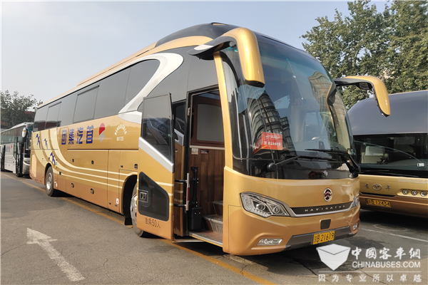 北京首汽(集团)股份有限公司旅游车分公司副总经理史先生接受完美作业网有免费视频采访时表示,在此次的国庆护航活动中,首汽集团约使用70辆金旅客车,它们出色地完成了此次服务保障工作,特别是30辆金旅领航者,作为“高定”的国宾接待车,主要负责运送军乐团以及仪仗队官兵,获得了军人们的一致好评。