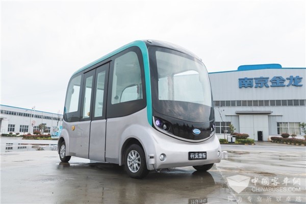 “蓝鲸号”是开沃汽车自主研发的具备L4级别的无人驾驶观光车,可针对厂区、景区等客户通勤及观光等需求,实现封闭场景下自动循迹、主动避障、自主寻找充电桩等功能。额定荷载12人,设计最高时速为40千米/小时,续航里程为160公里。为实现更加完整的无人驾驶应用,开沃汽车开发了基于5G的远程驾驶平台,利用5G技术超高带宽、低延迟、高可靠等优势,实现广泛场景下主动或被动的人工接管,使“蓝鲸号”具备了更安全的运营能力。