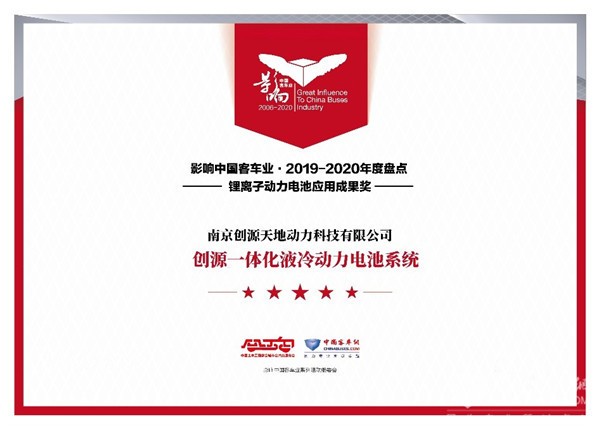 创源一体化液冷动力电池系统斩获“2019-2020年度锂离子动力电池应用成果奖”。南京创源天地动力科技有限公司是开沃集团全资子公司,主要从事可充电动力电池包和电池管理系统、汽车线束、高压配电箱、电机控制器、BMS等汽车核心零部件和系统的设计、研发和生产。