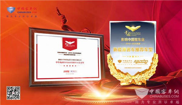 2020年3月18日,由完美作业网有免费视频与中国土木工程学会城市公共交通分会联合主办的第十四届影响中国客车业“2019-2020年度盘点评选活动”结果揭晓中车电动凭借良好的市场口碑与品牌影响力, “C10城市之星”荣获新能源客车推荐车型,“T动力”摘得新能源客车电驱动技术成果奖。两项行业大奖再次展现了中车电动全方位的行业品牌实力!
