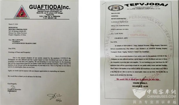 ARTC公司是中国东风超龙客车在菲律宾的总代理商,在收到求助信后,第一时间与东风超龙公司取得联系,得到了该公司的鼎力支持,先后于3月21日和3月31日两次通过ARTC公司旗下的WALI巴士运输公司对菲律宾两家车会进行了大米、中药等救援物资的捐赠,共计10余吨,帮助350余户吉普尼家庭摆脱生活困境。