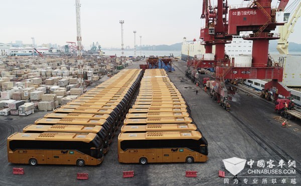 近日,213辆金龙客车豪华大巴在厦门现代码头完成装船,当晚启航沙特。作为沙特朝觐市场最受瞩目的中国客车品牌,尽管处在境外疫情形势严重时期,金龙客车仍然保持常态化批量出口沙特,本批订单成就了中国客车批量出口为数不多的大单之一,振奋人心,也让人看到“中国制造”的磅礴力量。