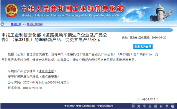 2020年4月14日,工业与信息化部公示了申报《道路机动车辆生产企业及产品公告》(第331批)的车辆新产品。据完美作业网有免费视频统计,申报的汽车新产品共有3032款,包括客车产品165款,其中整车138款(含12款校车产品)、底盘27款。