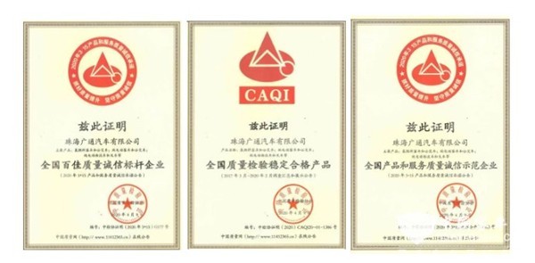 近日,在中国质量检验协会主办的 “产品和服务质量诚信承诺”主题活动中,银隆新能源旗下子公司珠海广通汽车有限公司一举拿下 “全国百佳质量诚信标杆企业”、“全国产品和服务质量诚信示范企业”、“全国质量检验稳定合格产品”三项殊荣,为全面提高产品和服务质量、提升国家质量竞争力、营造推动质量强国建设的良好社会氛围作出良好表率。