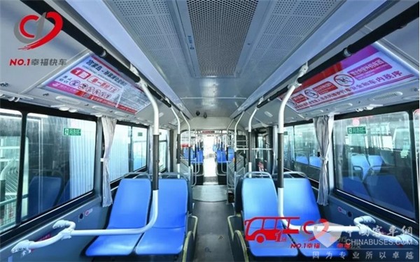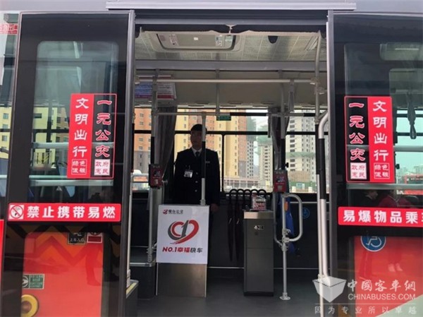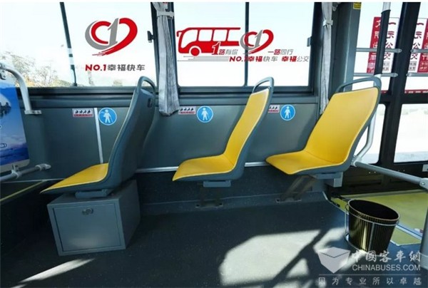 同时,“新N系”在细节上的打磨也是处处见真功。车辆采用激光LED大灯,光照提高四倍亮度,光源节能50%。车门上还装有LED氛围灯,增加整车辨识度的同时,夜间行车也更加安全。车门处配有钢化玻璃乘客隔栏、翻板式无障碍通道等多项人性化设计,配合车辆自动侧降功能,提升乘客在上下车过程中的速度,增加安全性与舒适性。