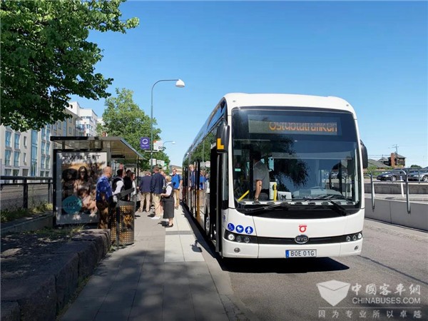 投入瑞典林雪平市运营的比亚迪18米纯电动铰接式大巴