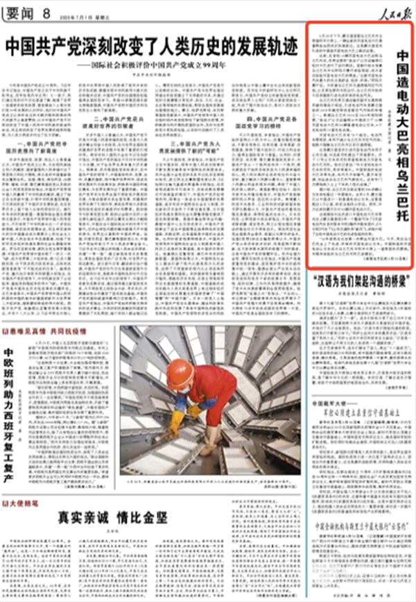 当地媒体对此次进口中国电动大巴非常关注。《蒙古真理报》用一个整版刊发了《双层电动汽车首次服务市民》稿件并配有图片。《今日报》刊发了《公共交通吹来“新风”》,详细介绍了这批中国电动大巴的先进性能和优势。