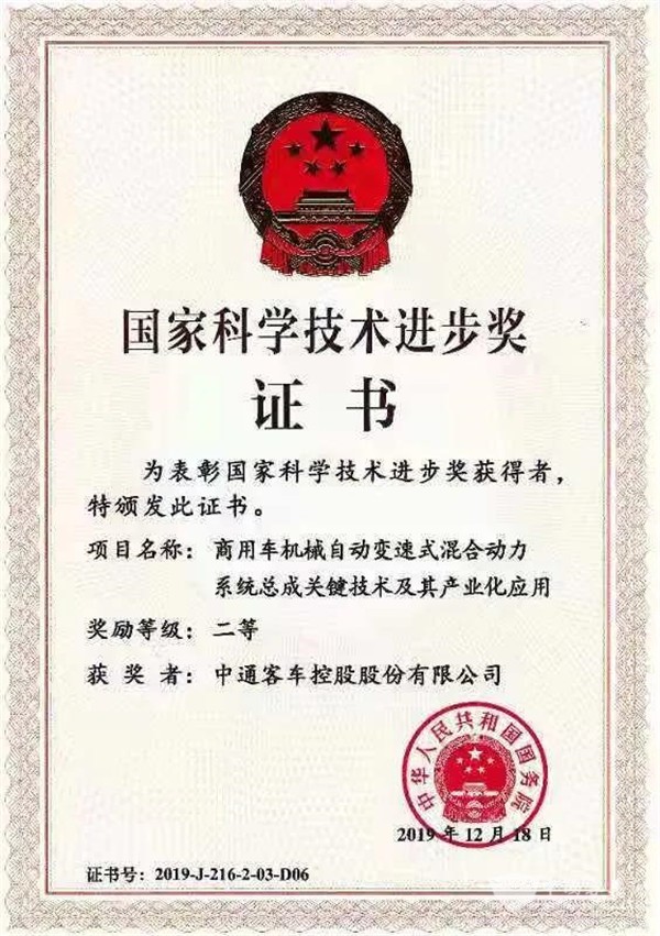 1月10日,中通客车荣获国家科学技术进步奖二等奖权威的奖项,这不仅是我们的荣誉,更是我们继续前行的动力。