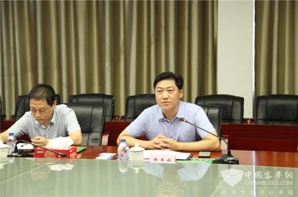 在双方召开的座谈会上,双方围绕开展产业合作的可行性进行了深入沟通。申龙客车技术研究院副院长吴永胜介绍了申龙客车的基本情况、发展历史以及申龙新能源产品的概况。雷玉成副市长对申龙客车近年的发展给予了高度的评价,随后介绍了潜江市针对企业营商环境、项目建设及规划、配套服务等相关政策,希望通过此次交流能够推动未来与申龙客车的进一步合作。