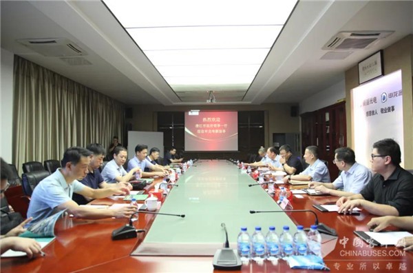2020年8月19日,湖北潜江市副市长雷玉成,潜江市招商服务中心主任张睿等一行领导莅临上海申龙考察调研,就未来申龙客车与潜江市开展产业合作的可行性进行了深入沟通。东旭汽车产业集团副董事长、常务副总裁、上海申龙客车执行董事长苏国珍,申龙客车副总经理姚国元等领导出席并接待。