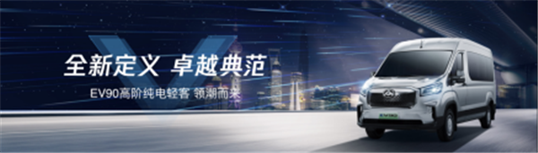 EV90,新发布四款车型中唯一的新能源产品, NEDC纯电续航里程达360km。车型按照全球最严苛的欧盟碰撞法规标准进行开发,进行了273项防撞、防火、防水的严苛试验测试,成为中国唯一经过欧盟认证的新能源宽体轻客。此外,EV90还具备6安全气囊、ADAS智能驾驶辅助系统等安全配置,并于行业率先采用激光焊接和热成型技术,为驾乘人员提供全方位的安全保障。