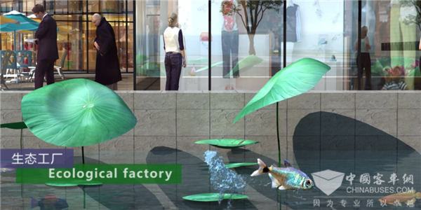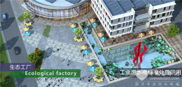 超级工厂采用五大污水处理系统:涂装废液处理、涂装废水处理、混合污水处理、中水回用处理、污泥处理。采用物化和生化相结合的污水处理工艺,对生产废水和生活污水集中处理,满足污水排放标准,做到清洁生产,循环利用。经过严格试验证明,处理后的水已超过了城市污水再生利用的水质标准,可用来绿化、冲厕,鱼儿也能畅游其中。