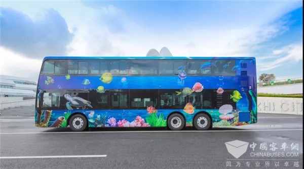 此批银隆新能源双层巴士车身及内饰共设置了六种不同的主题,分别是:大好河山号、岛屿风光号、亲子游乐园号、卡通画廊号、罗曼蒂克号、海底世界号,为旅客们带来精彩纷呈的乘坐感受与体验。